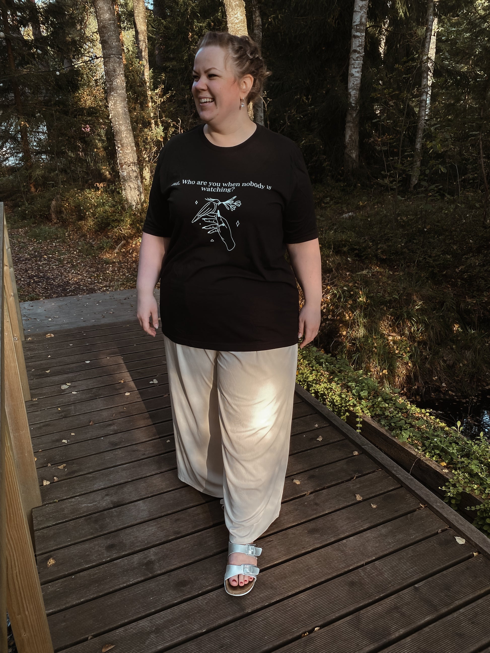 “But Who Are You When Nobody Is Watching?” Unisex Black T-Shirt
